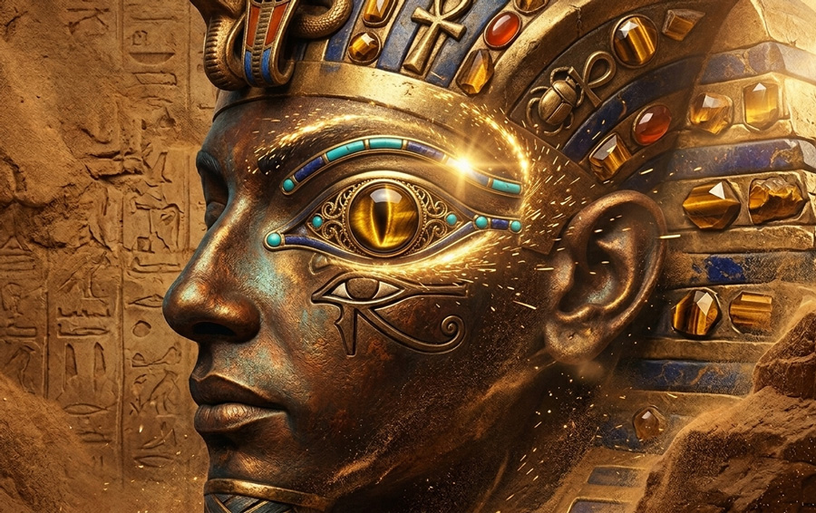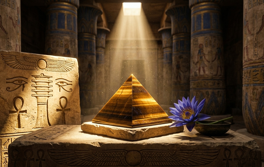 Nella Valle del Nilo, il legame tra l’Occhio di Tigre e il divino raggiunge la sua massima espressione. La pietra non era un semplice ornamento, ma la manifestazione fisica dei raggi solari.