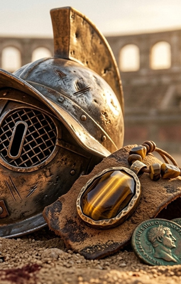 Oltre ai legionari, l’Occhio di Tigre era cercato dai gladiatori come amuleto estremo. Legata al polso, serviva a respingere l’invidia della folla e a infondere il coraggio ferino necessario per sopravvivere nell’arena.